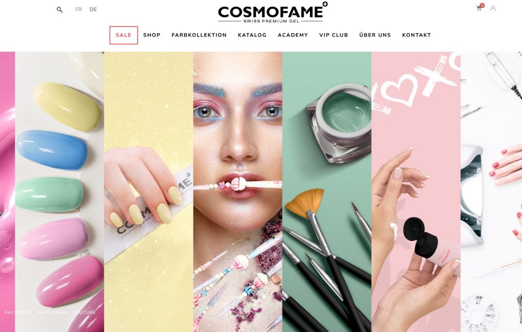 COSMOFAME is an exclusive Swiss brand specializing in high-quality, UV-curing nail gels and beauty products. The website serves as an e-commerce platform aimed at both nail studios and distributors, providing access to unique creations crafted with precision and Swiss engineering. COSMOFAME emphasizes innovation, exclusivity, and reliability, inviting customers to write their own success stories with their premium product range.